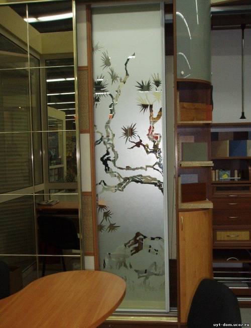 Шкафы купе с цветным пескоструем